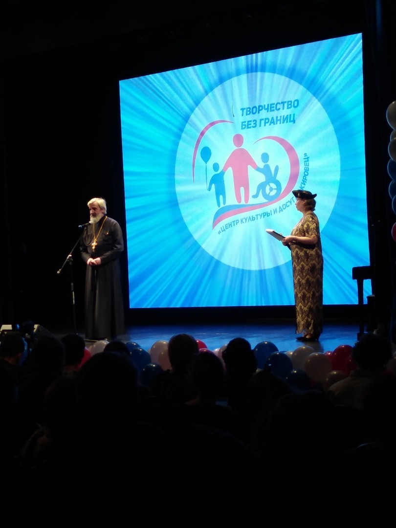 В седьмой раз в Центре культуры и досуга «Кировец» прошел фестиваль-конкурс «Творчество без границ» для людей с ограниченными возможностями здоровья. На мероприятие собрались представители 15 районов Санкт-Петербурга. Дети и взрослые представили зрителям и жюри свои концертные номера — литературно-поэтические произведения, вокальные и танцевальные, посвященные теме «Санкт-Петербург». В фойе была организована выставка работ изобразительного искусства и декоративно-прикладного творчества. Перед участниками мероприятия выступила директор ЦКД «Кировец» Гайдук Диана Михайловна. Традиционно на праздник был приглашен благочинный Красносельского округа настоятель храма св. прав. Иоанна Кронштадтского протоиерей Михаил Подолей, который обратился ко всем собравшимся с приветственным словом, пожелав успехов в дальнейших трудах: «Мы с вами имеем возможность проводить такие мероприятия и напомнить себе о самом главном, о том, чтобы мы не теряли связь с Богом. Бог сотворил нас разными — с разными способностями, с разными дарованиями. У нас разные возможности. Как сказал один философ — даже на одной лесной поляне трава одинаково не растет, одна меньше, другая больше, одна сочнее, другая сухая. С христианской точки зрения это означает, что мы можем служить друг другу, то есть мы нужны друг другу и можем быть друг другу полезны. Вот это очень важно замечать. Еще хотел бы пожелать всем нам, всем, кто собрался в этом зале, всем, кто трудится на этом нелегком поприще служения, милосердия, чтобы мы не оставляли себя без благодатной Божией помощи, чтобы мы к ней всегда прибегали и знали — у нас есть такое право. Господь дал свободу, и мы можем выбирать. Если кто-то уже для себя сделал что-то хорошее, нужное, помоги другому человеку, поддержи в трудный момент, в трудную минуту. То, что мы с вами разные, то, что у нас разные способности, возможности, дарования — это только украшает нашу земную жизнь». Несколько лет назад отец Михаил на таком же фестивале преподнес в дар икону Пресвятой Богородицы, теперь она каждый раз присутствует на празднике, к которой выступающие и их сопровождающие обращаются за духовной помощью.