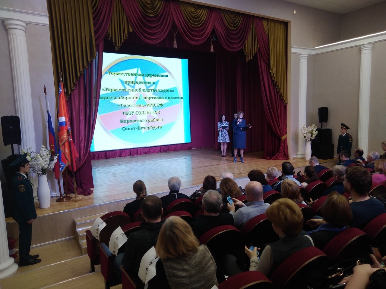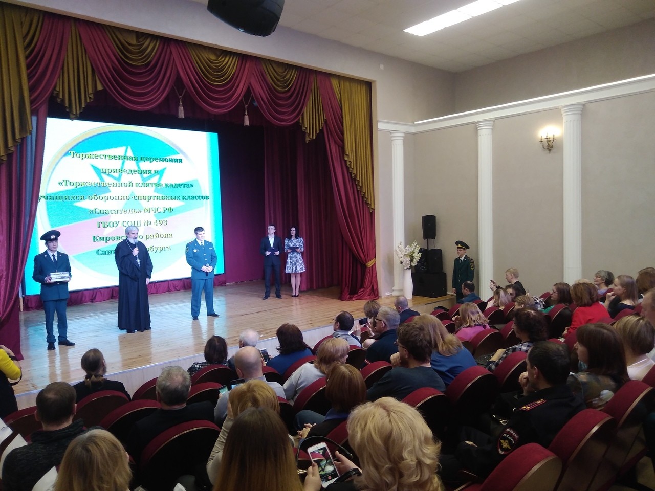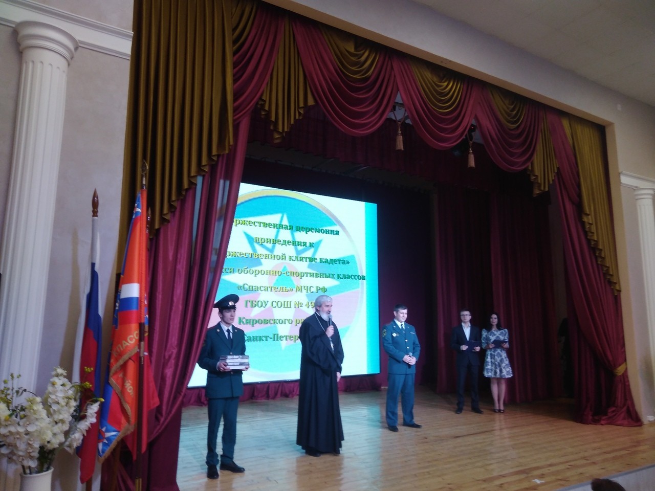 20 февраля в ДДЮТ Кировского района Санкт-Петербурга состоялась церемония приведения к «Торжественной клятве кадета» учащихся оборонно-спортивных классов «Спасатель» МЧС РФ общеобразовательной школы № 493. Традиционно на праздничное мероприятие был приглашен настоятель храма святого праведного Иоанна Кронштадтского на Кронштадтской площади благочинный Красносельского округа протоиерей Михаил Подолей. Отец Михаил поздравил всех с праздником, пожелал Божией помощи в учебе и, обращаясь к посвященным кадетам, отметил, что «форма обязывает всегда быть готовыми к служению», что «военнослужащие, полицейские, священнослужители, спасатели МЧС призваны не просто работать, а служить». Также он сказал, «чтобы быть здоровыми духом и телом и по-настоящему счастливыми людьми, нужно жить по Закону Божиему». В школьную библиотеку передал в дар несколько экземпляров книги «Закон Божий».