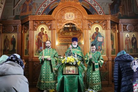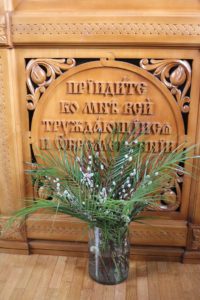 Велича́ем Тя,/ Живода́вче Христе́,/ оса́нна в вы́шних,/ и мы Тебе́ вопие́м:// благослове́н Гряды́й во и́мя Госпо́дне.