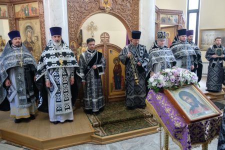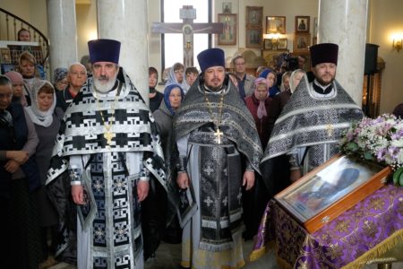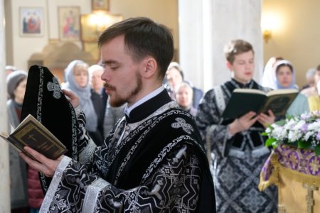 Благочинный Красносельского округа протоиерей Михаил Подолей и диакон храма святого праведного Иоанна Кронштадтского на Кронштадтской площади Константин Подолей сослужили Его Высокопреосвященству.