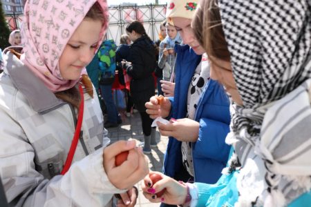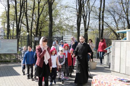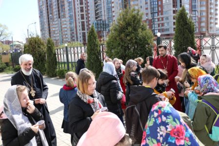 Также отец Михаил обратил внимание на то, что «мы можем быть свидетелями этого чуда – Воскресения Христова, что мы можем делать добрые дела во имя Господа, что мы можем быть причастны тому хору ангельскому небесному, который воспевает Воскресение Христово. Господь и нас сподобил на земле прославлять Его Воскресение», и напомнил, что самое главное – это встреча духовная в храме с Господом, которая поможет детям в их дальнейшей жизни расти здоровыми, добрыми и счастливыми людьми на нашей земле.