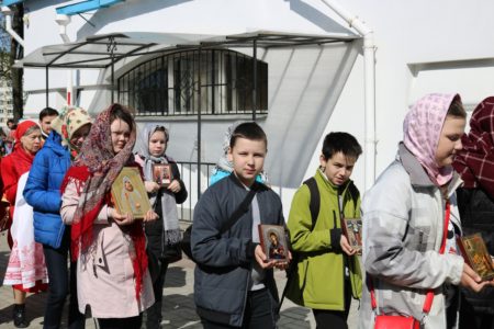 Некоторые ребята приняли участие в крестном ходе, для многих он оказался первым в их жизни. Ответственно и с большой радостью они несли иконы и хоругви.