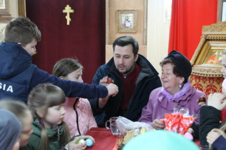 29 апреля, в понедельник Светлой седмицы, храм святой равноапостольной великой княгини Российской Ольги в Дудергофе, настоятелем которого является протоиерей Михаил Подолей, благочинный Красносельского округа, посетили учащиеся 4 класса школы № 289 в сопровождении учителя Карандашовой Нины Вениаминовны. Детей встретил клирик храма святого праведного Иоанна Кронштадтского на Кронштадтской площади иерей Николай Терентьев вместе с прихожанами. Ребятам рассказали о Празднике Святой Пасхи и об истории храма. И дети, и взрослые играли в традиционные пасхальные игры, пели пасхальные детские песни. Было приготовлено праздничное угощение.