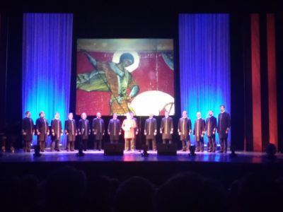На сцене в этот вечер выступал хор Валаамского монастыря, который исполнил духовные песнопения и народные песни. Сергей Анатольевич Новожилов, народный артист России, читал тематические стихотворения.