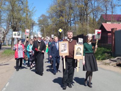 9 мая в поселке Дудергоф по инициативе прихода храма святой равноапостольной великой княгини Российской Ольги при содействии администрации муниципального образования Красное Село был организован «Бессмертный полк».
