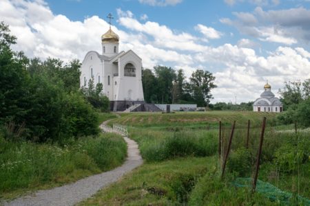 Храм святых мучеников Адриана и Наталии возведен неподалеку от места, где находился одноименный храм, разрушенный во время Великой Отечественной войны. Регулярные богослужения совершаются с января 2005 года. В храме создана экспозиция и Книга памяти, куда каждый может внести данные о родственниках, сражавшихся под Ленинградом, для их молитвенного поминовения. Рядом с храмом разбит мемориальный парк.