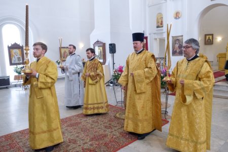 Его Высокопреосвященству сослужили секретарь епархиального управления протоиерей Сергий Куксевич, благочинный Красносельского округа протоиерей Михаил Подолей, настоятель протоиерей Михаил Стрельников с клиром и другие священнослужители.
