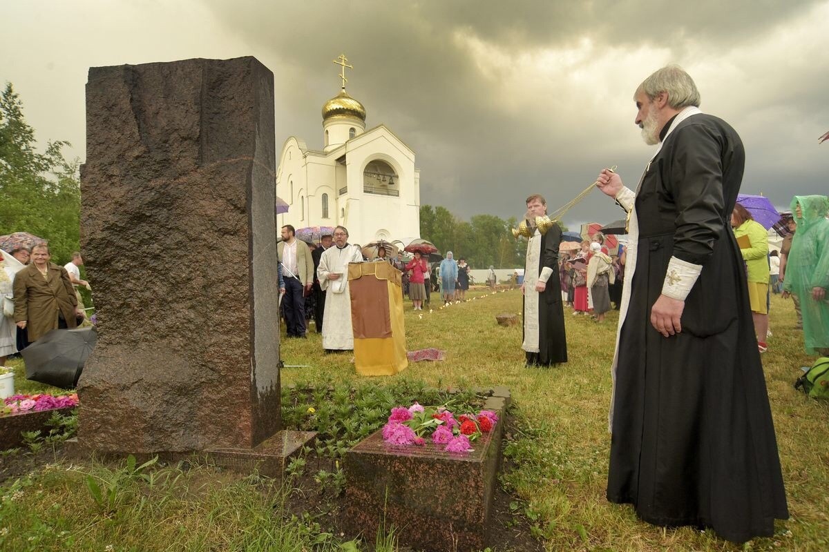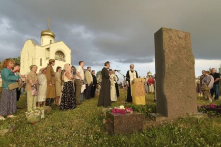 Кульминацией вечера стала панихида у мемориала на территории храма. Перед заупокойным богослужением к храму была выложена дорожка из цветов и зажженных свечей.