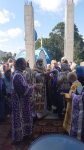 В храме святого праведного Иоанна Кронштадтского на Кронштадтской площади была совершена Божественная литургия. После Литургии молящиеся прошли крестным ходом к строящемуся храму в честь Всемилостивого Спаса. На площадке второго этажа, перед главным храмом был совершен водосвятный молебен и прочитана молитва на освящение меда нового сбора. После богослужения настоятель храма протоиерей Михаил Подолей обратился к собравшимся на молитву с пастырским словом: