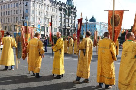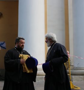 Позна́й свою́ бра́тию, росси́йский Ио́сифе,/ не в Еги́пте, но на Небеси́ ца́рствующий,/ благове́рный кня́же Алекса́ндре,/ и приими́ моле́ния их,/ умножа́я жи́та лю́дем плодоно́сием земли́ твоея́,/ гра́ды влады́чествия твоего́ огражда́я моле́нием// и правосла́вным христиа́ном на сопроти́вныя спобо́рствуя.