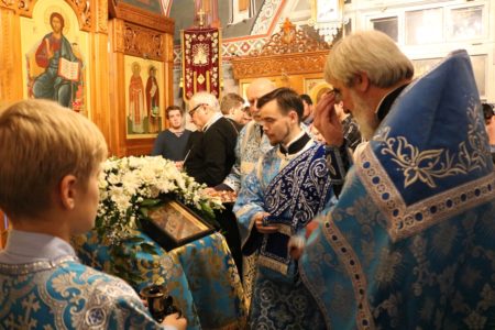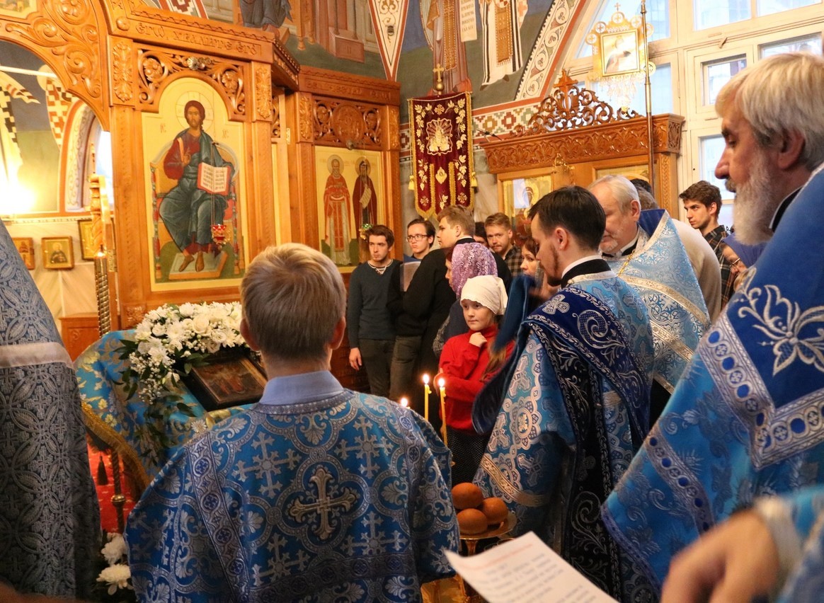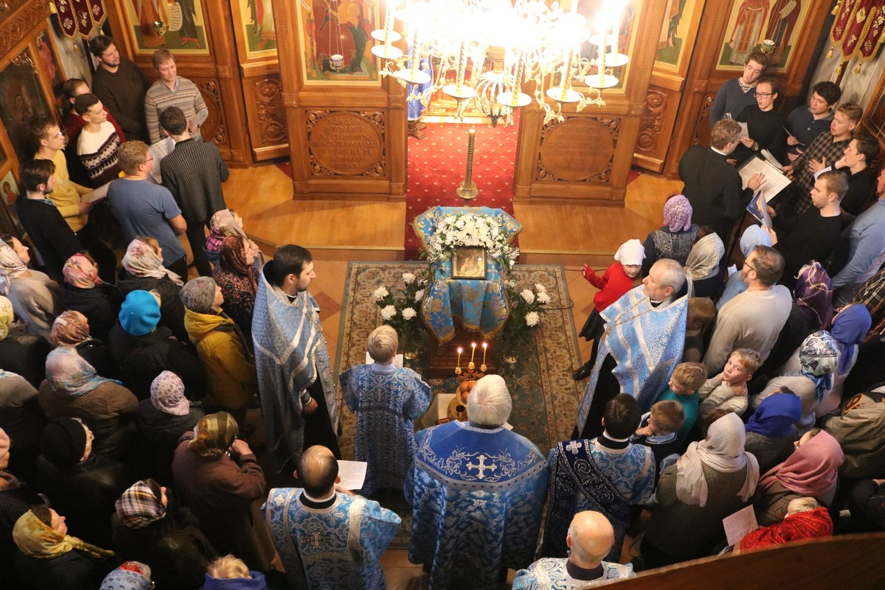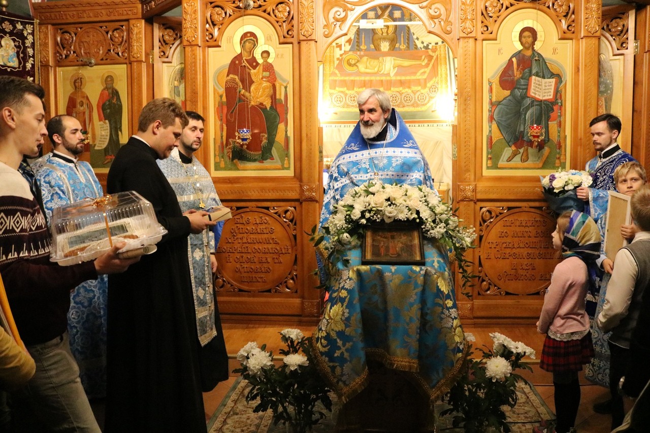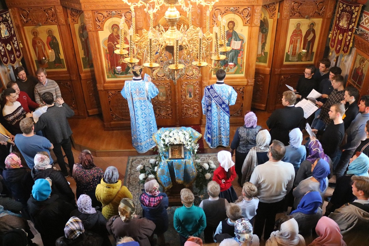 Накануне праздника Покрова Пресвятой Владычицы нашей Богородицы и Приснодевы Марии в нашем храме было совершено Всенощное бдение. Пел мужской хор «Всехсвятский» (г. Минск, Беларусь) под управлением регента Дмитрия Токмакова.