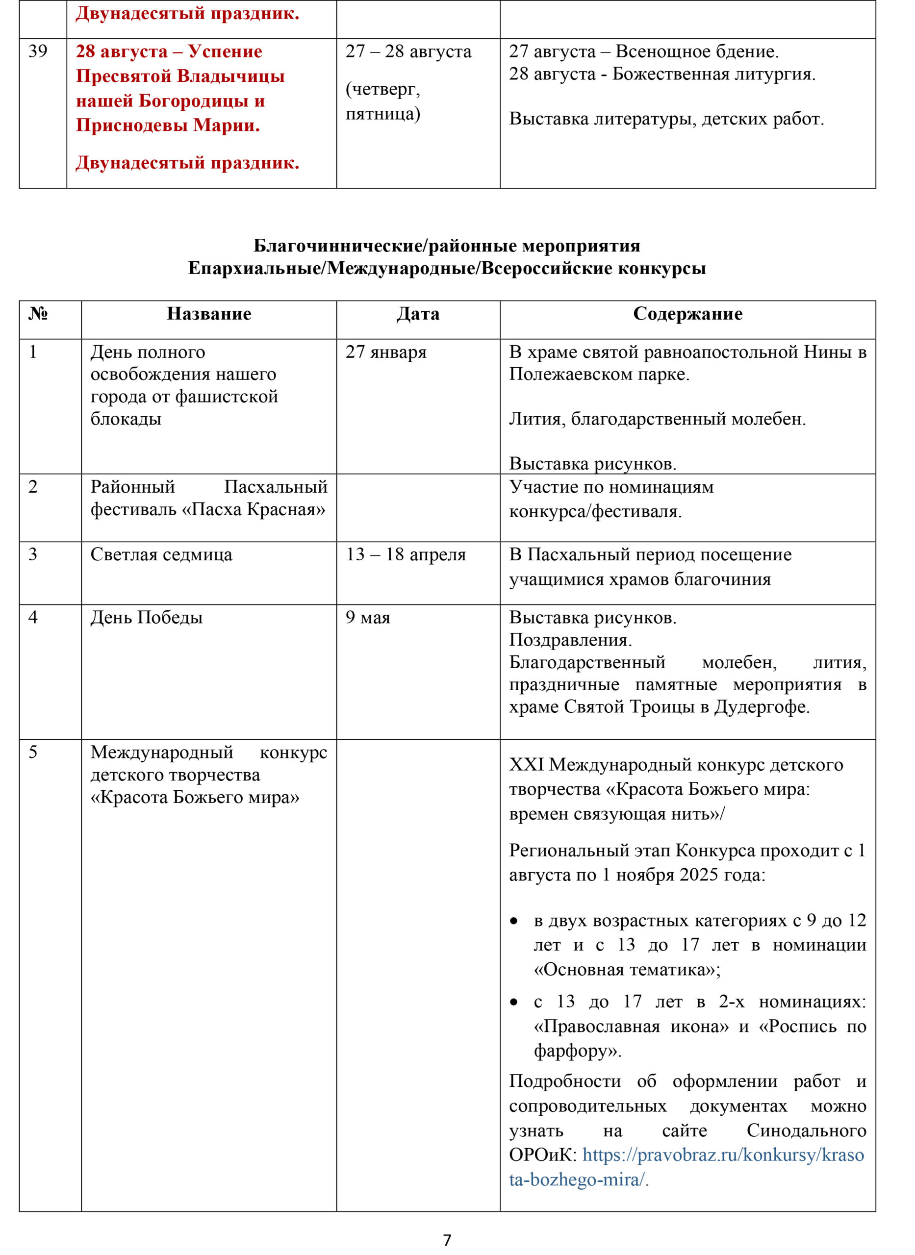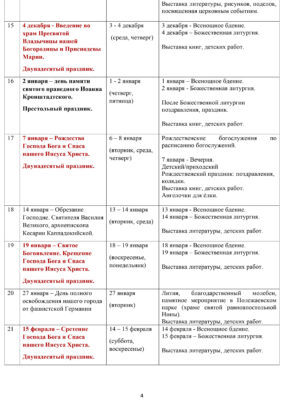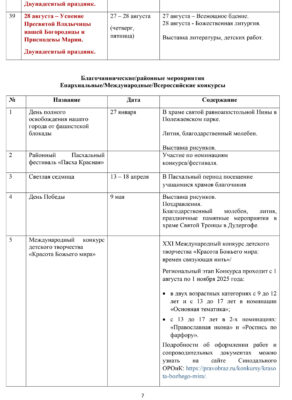 - Творчество (рукоделие, музыка, хоровое и церковное пение, подготовка к праздникам).